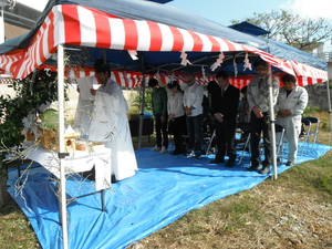 日差しもあり、ぽかぽか陽気の中地鎮祭が執り行われました。