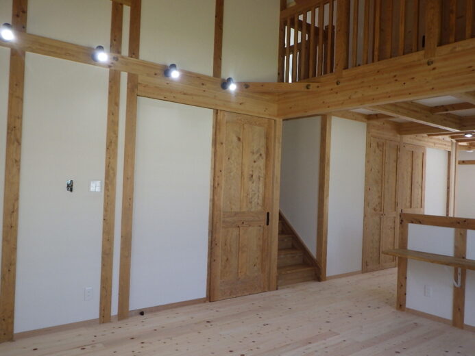 まずは、吹き抜けのあるリビングをお見せしますね。