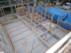 土台を敷いて、柱を建てて・・・順調に建込みが進んで