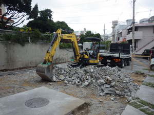 はぎ取りが完了し、クラッシャーを敷詰め転圧をしていきます。