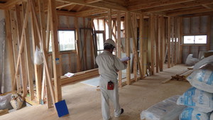 屋根工事がほぼ完了し、透湿防水シートが施工されされました。